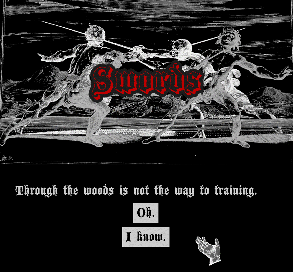 The beginning of 'Swords', an interactive fiction game, is available to play